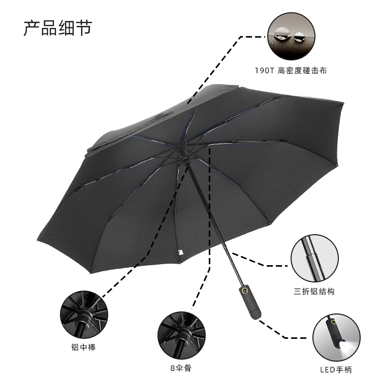 伞骨由八根优质玻璃纤维伞骨组成,强风吹不动